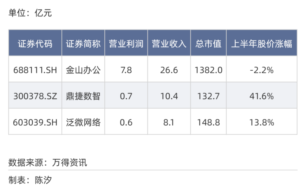 表7:A股横向通用软件行业盈利最高的三家公司的股价表现(2025年上半年)
