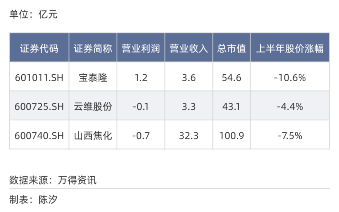 2025年上半年,营业利润为正的A股焦炭公司为宝泰隆,其营业利润为1.22亿元,2024年同期亏损2.55亿元。
