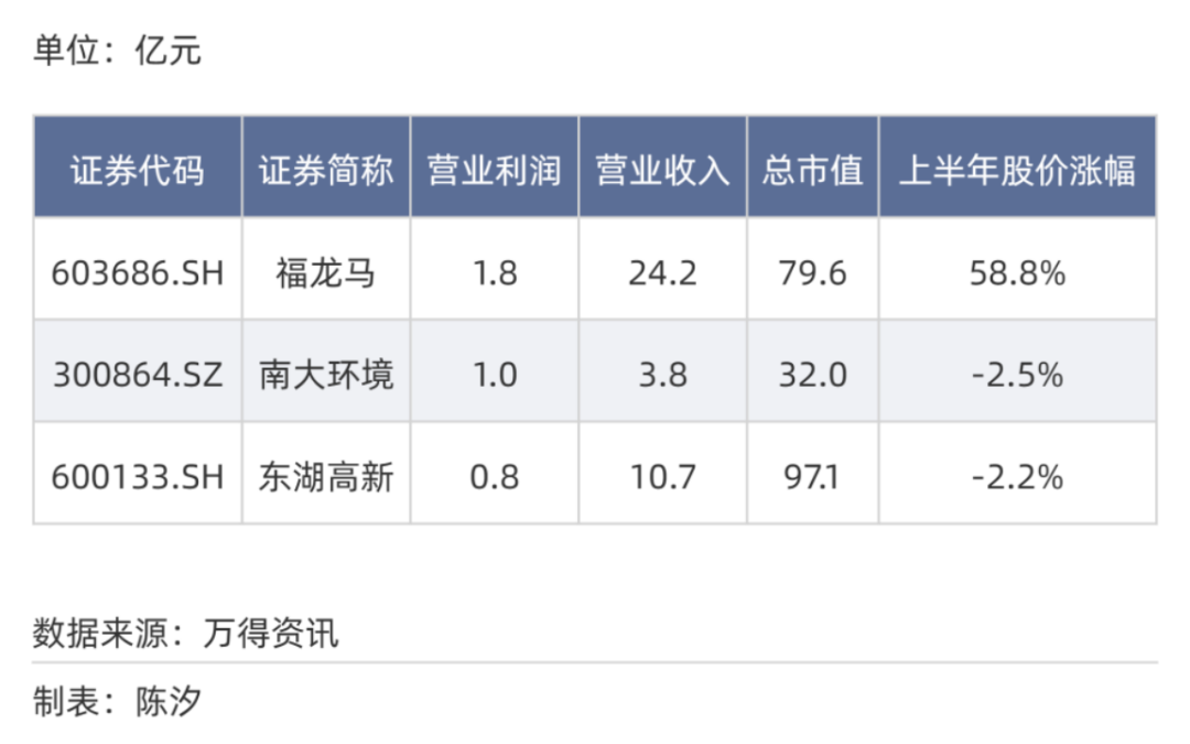 2025年上半年,营业利润最高的两家综合环境治理企业是福龙马与南大环境,其营业利润分别为1.85亿元、0.99亿元,福龙马同比增长6%,南大环境同比下降12%。