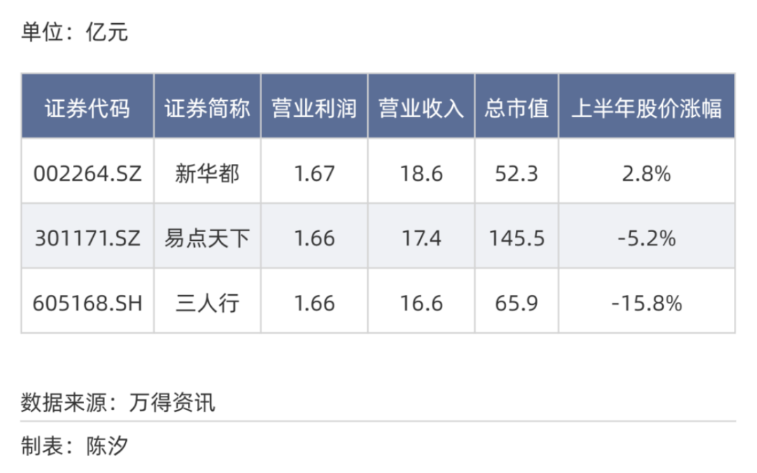 2025年上半年,营业利润最高的两家A股营销企业是新华都与易点天下,其营业利润分别为1.67亿元、1.66亿元,分别同比增长3.7%、50.9%。