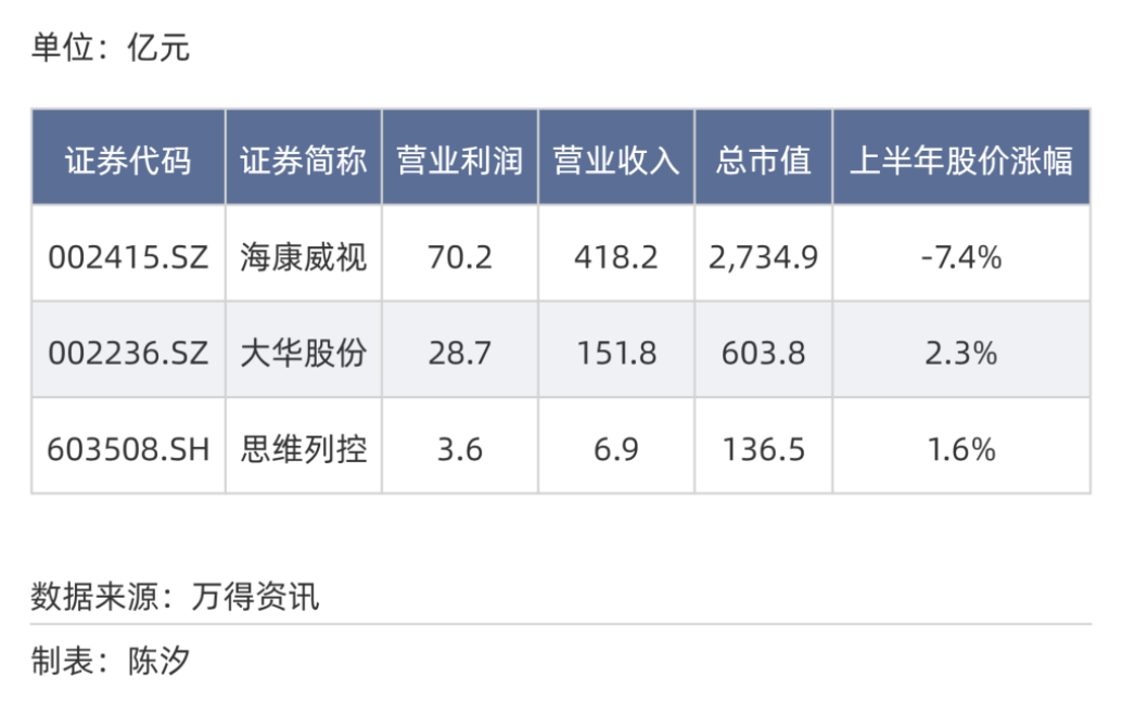 表2:A股安防行业盈利最高的三家公司的股价表现(2025年上半年)