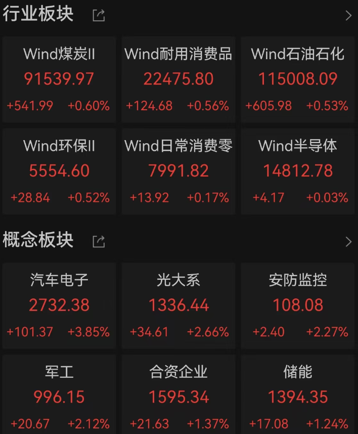 软件服务、大消费、煤炭、房地产板块走强,中海油田服务等大涨,阿里巴巴盘中一度涨2%(11月17日,阿里巴巴正式宣布“千问”项目全力进军AI to C市场。目前,千问App公测版已在各大应用商店上架,并同步提供网页和PC版)。