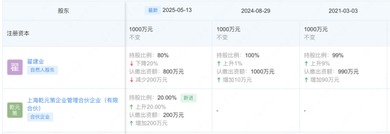 公开资料显示,上海守朴资产管理有限公司成立于2018年,公司现有5位持证从业人员,股权穿透结果显示,2025年5月翟建业将持股比例从100%降至80%,引入上海乾元策企业管理合伙企业(有限合伙)持有20%股份,但翟建业身为该合伙企业的执行事务合伙人与实际控制人,依旧是守朴资产的绝对掌舵者。