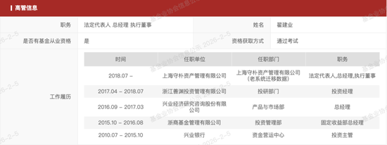 翟建业的金融履历十分亮眼,曾任职于兴业银行资金运营中心、浙商基金等机构,担任过投资主管、固收部总经理等职务,拥有14年债券投资经验,算是固收圈的资深人士。这样的履历,也曾让市场对守朴资产多了几分期待,公司更是强调正直、真诚、专业作为发展的文化。只是,打着谨慎、真诚旗号的守朴资产,后续的一系列操作,似乎与这份初衷渐行渐远。。。