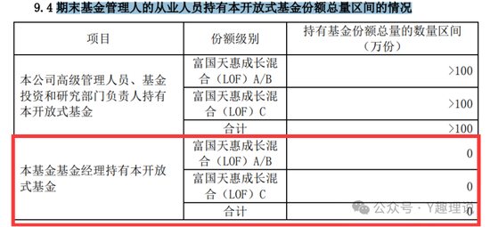 在明星基金经理朱少醒管理的富国天惠成长基金中,根据2023年年度报告发现,朱少醒在富国天惠成长A/B的自购份额为0,而在同年的中期报告中,他的自购份额为10万-50万份。