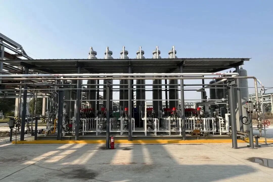 该装置设计处理能力达 4000Nm³/h,能将氯碱副产氢提纯至 99.999% ,可同时满足工业高纯氢和燃料电池用氢双重标准,从去年12月26日一次开车成功,到如今连续稳定运行 8 个月,这套氢气回收装置始终保持着高可靠性,为后续应用打下坚实基础。
