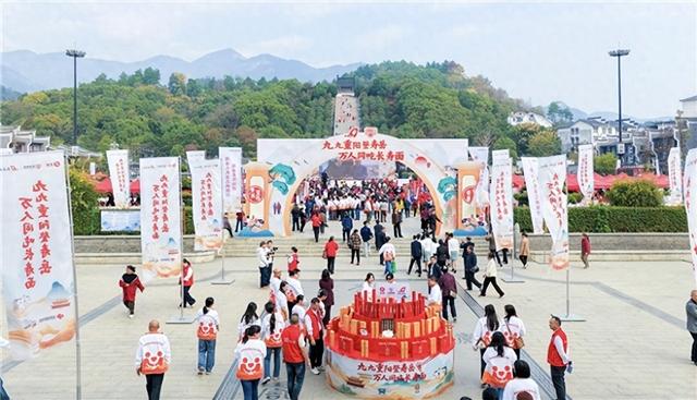 10月29日,“九九重阳登寿岳·万人同吃长寿面”系列活动在南岳衡山盛大举行。多位百岁“寿岳寿星”接受“麻姑献寿”集体寿礼,九对金婚夫妇重温结婚誓言,现场节日气氛浓厚。
