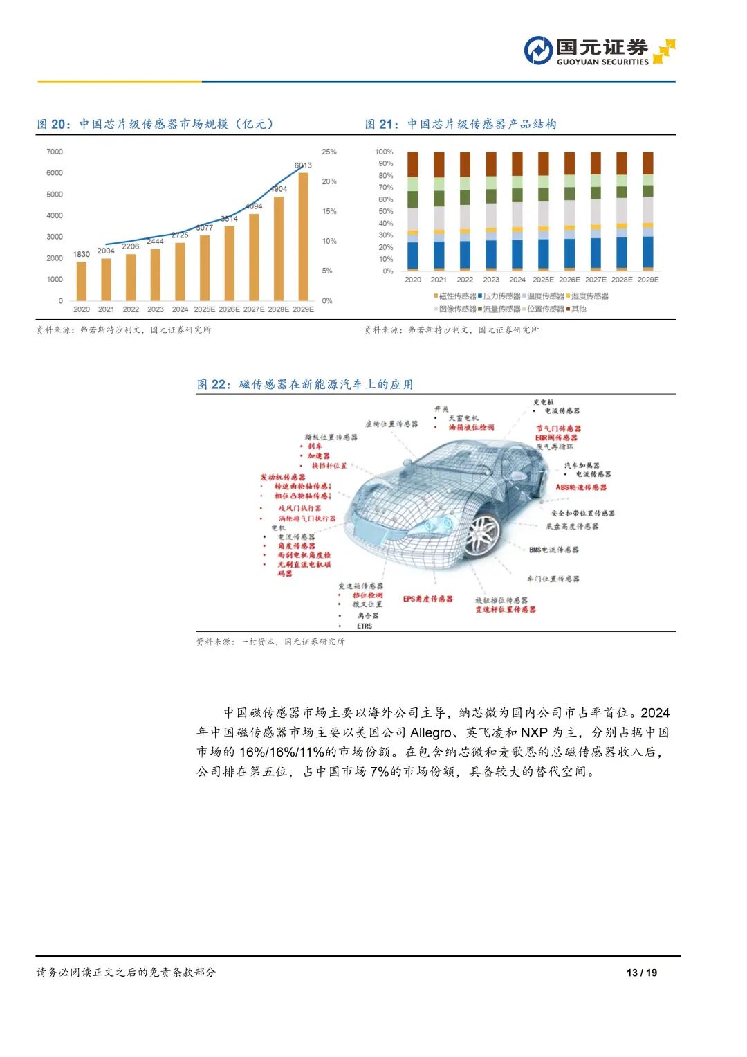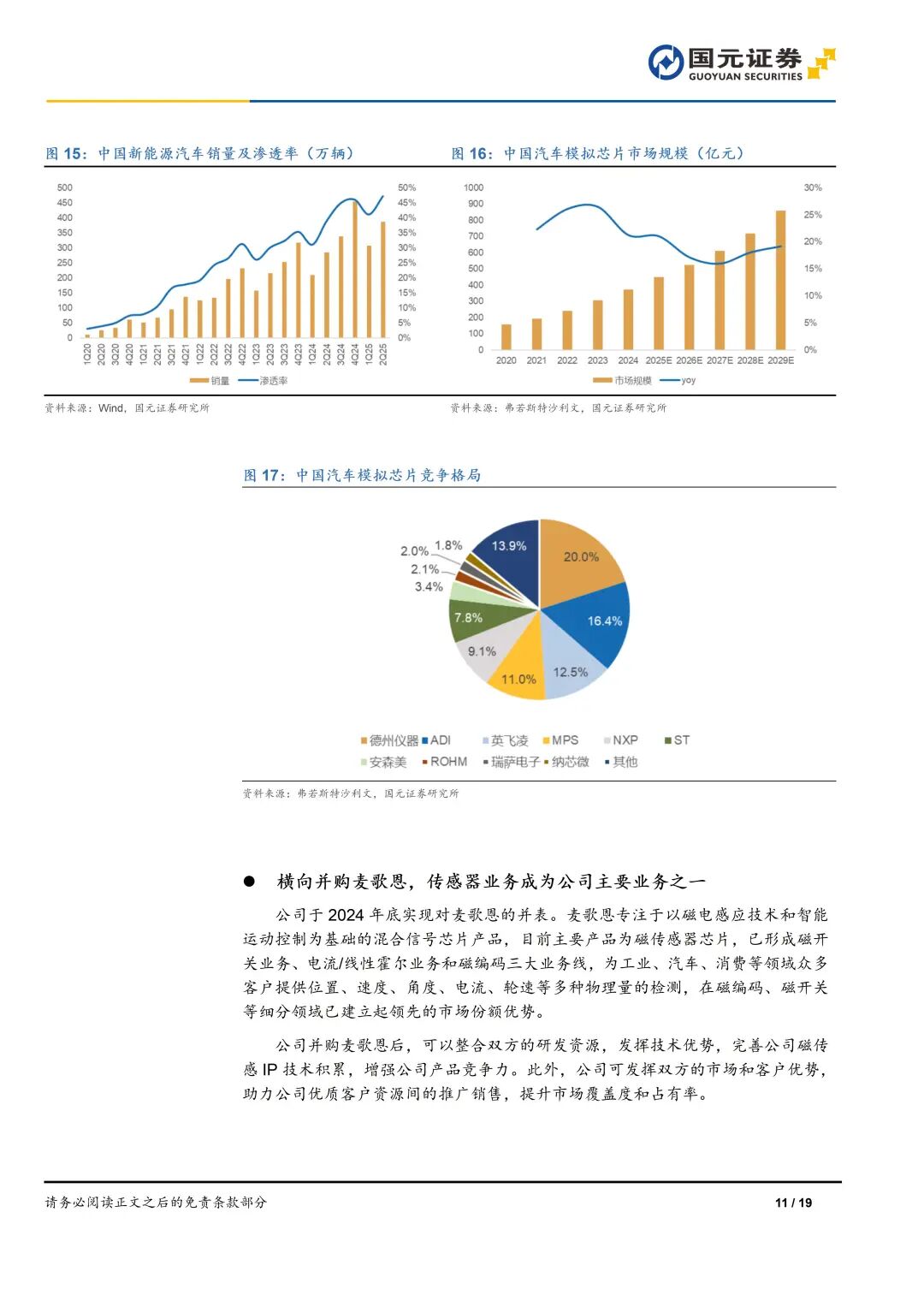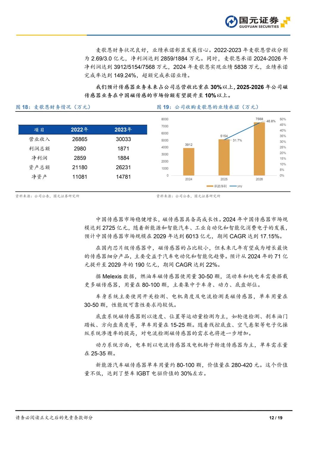 3)横向并购麦歌恩,传感器业务成为公司主要业务之一。新能源汽车单车用量提升带动磁传感器成为中国传感器市场中增速最快的细分产品。公司在2024年底实现麦歌恩的并表,并超额完成2024年业绩承诺。我们预计传感器业务未来占公司总营收比重可达到30%以上,2025-2026年公司磁传感器业务在中国磁传感器的市场份额有望提升至10%以上。