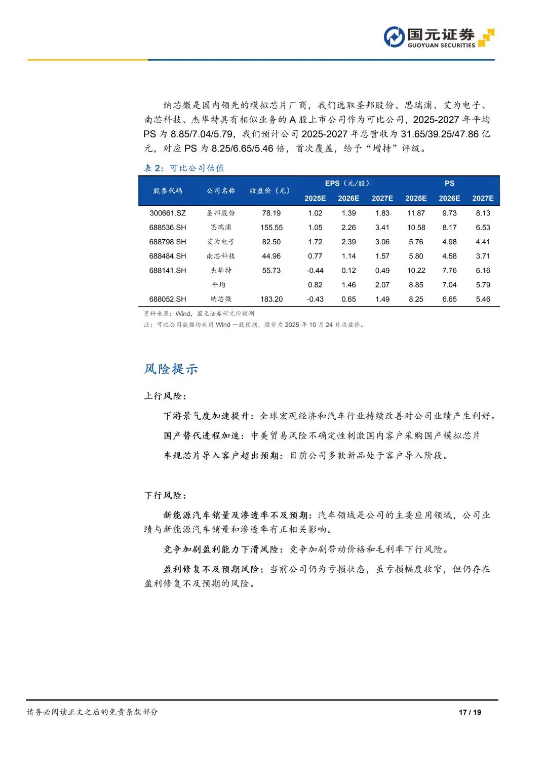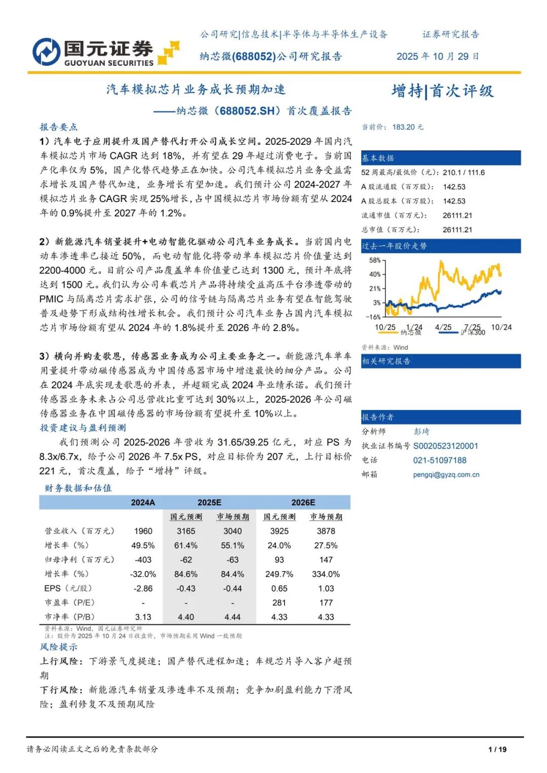 本报告摘自国元证券2025年10月29日已发布的《汽车模拟芯片业务成长预期加速——纳芯微(688052.SH)首次覆盖报告》,具体报告及分析内容请详见报告。若因对报告的摘编等产生歧义,应以报告发布当日的完整内容为准。