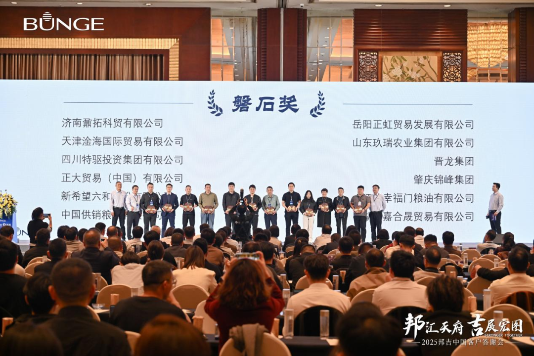 2025年10月30日,邦吉中国在成都香格里拉大酒店举办“2025邦吉中国客户答谢会”。金健米业旗下托管公司湖南嘉合晟贸易有限公司凭借长期稳定表现、坚实伙伴关系和良好市场声誉,在众多合作伙伴中脱颖而出,获邦吉中国“磐石奖”。