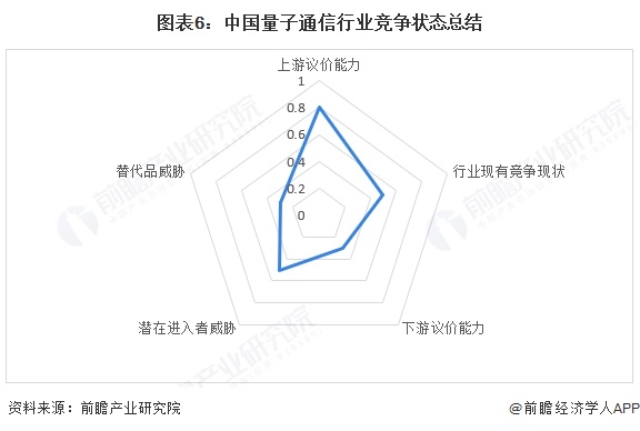 根据以上分析,对各方面的竞争情况进行量化,1代表最大,0代表最小,目前我国量子通信行业五力竞争总结如下: