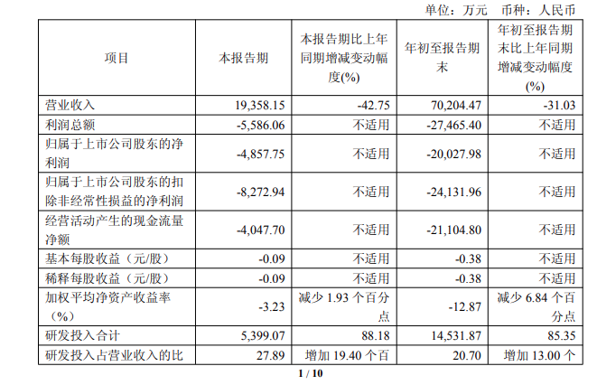 再看第三季度单季数据:其营收1.94亿元,同比下降42.75%;归母净利润亏损4858万元,比去年同期的2258万元亏损翻了一倍多;扣非归母净利润亏损8273万元,也比去年同期的4212万元亏损得多。这一季度营收下降,主要是因为机器人业务收入减少36.67%,加上非战略业务的系统集成收入下降57.78%。