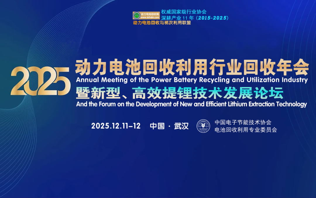 12月10日-12日武汉将举办“中国动力电池回收利用行业回收年会暨新型、高效提锂技术发展论坛”