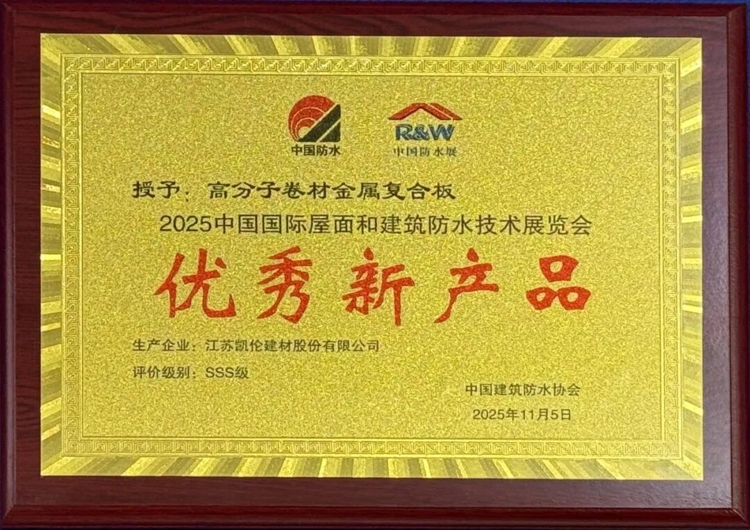 此次展会隆重揭晓了2025中国防水展“优秀新产品”,凯伦股份全球首创可焊接的物理防腐钢屋面——高分子卷材金属复合板(融合 复合瓦)荣耀入选。由于其刚柔并济的材料特性与卓越的使用寿命,为建筑提供了“防锈防渗不翻修,二十五年全守护”的可靠呵护,此次入选实至名归。