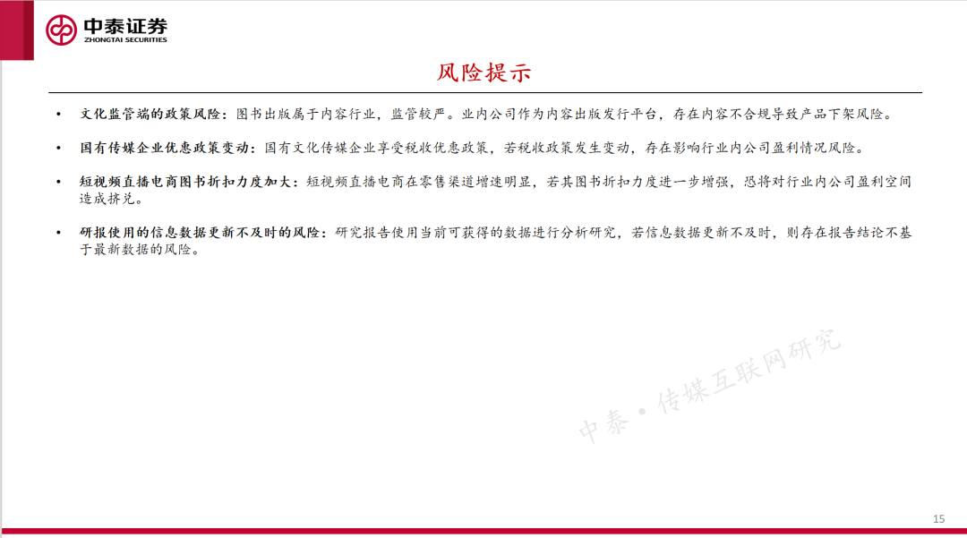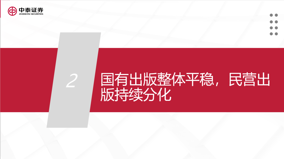 本篇报告全文请参照中泰传媒互联网团队11月4日外发的《出版行业三季报总结:业韧持坚,勇毅前行》,内容以正式报告为准。