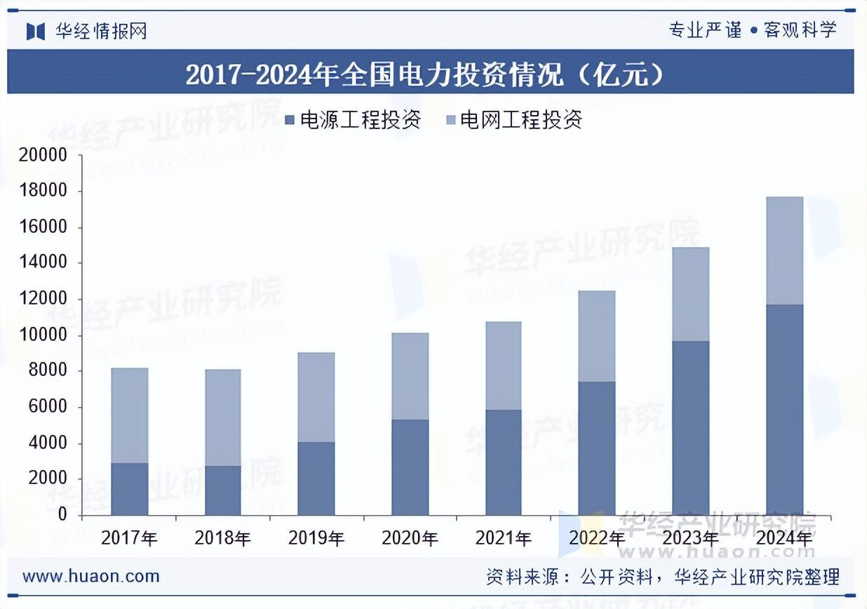 电缆附件作为输配电网络的重要组成部分,其行业发展与国民经济发展及电网建设投资紧密相关。为应对高速增长的国民经济对用电需求的大幅增长,我国电力投资维持在较高的投资规模。近年来,随着碳达峰、碳中和目标的提出,更是带动电力投资增速显著提升。2017-2024年,我国电力投资由8239亿元增长至17770亿元,其中,电源投资由2900亿元增长至11687亿元,电网投资由5339亿元增长至6083亿元,尤其是2019之后,电力投资加速明显。