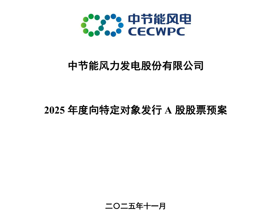 11月7日,中节能风力发电股份有限公司(以下简称“节能风电”或“公司”)发布《2025年度向特定对象发行A股股票预案》。