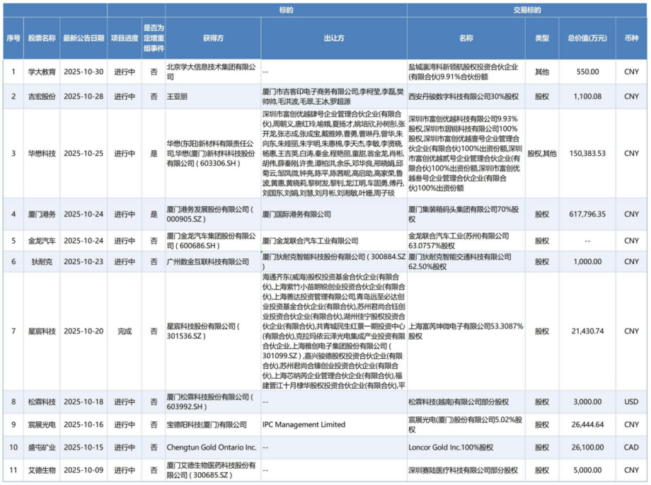 注:上述并购重组事件最新公告日均在10月