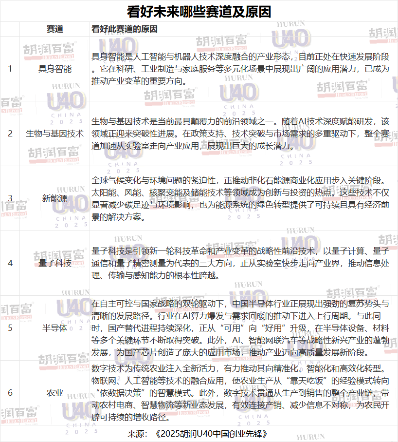 从《2025胡润U40中国创业先锋》榜单来看,未来哪些赛道被看好?