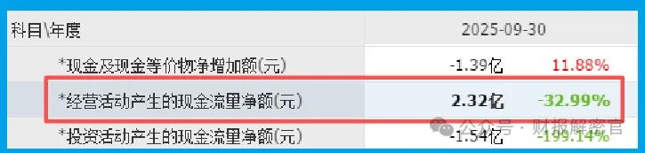 最引人注目的是经营活动产生的现金流量净额——竟然高达2.32亿元,是净利润的整整6倍!这就好比一个人声称收入锐减,银行卡流水却暴增,其中必有蹊跷。