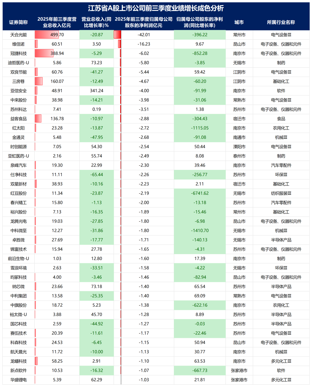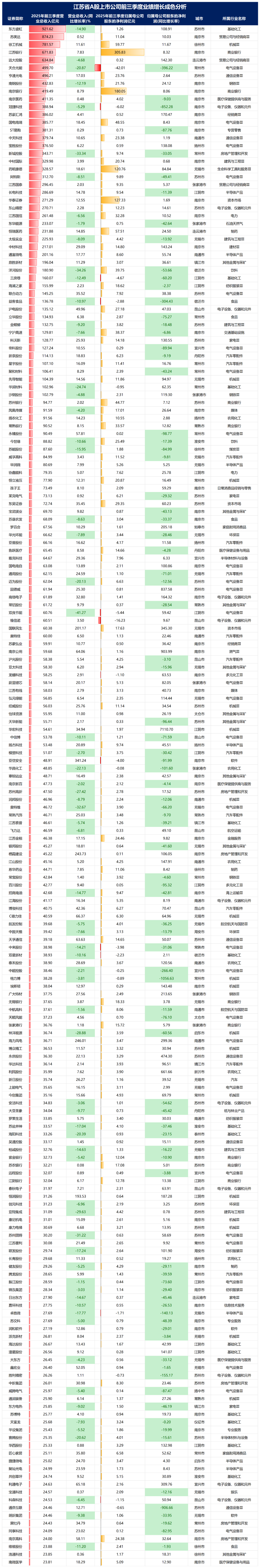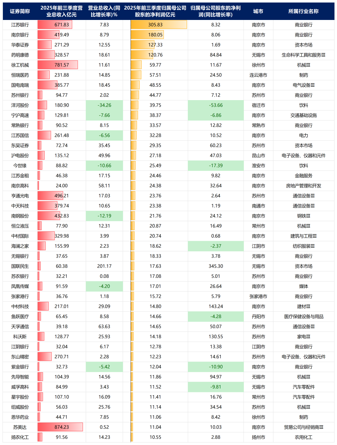 从核心指标看,江苏省 A 股上市公司前三季度呈现 “营收规模头部集中、利润增长两极分化” 的特征: