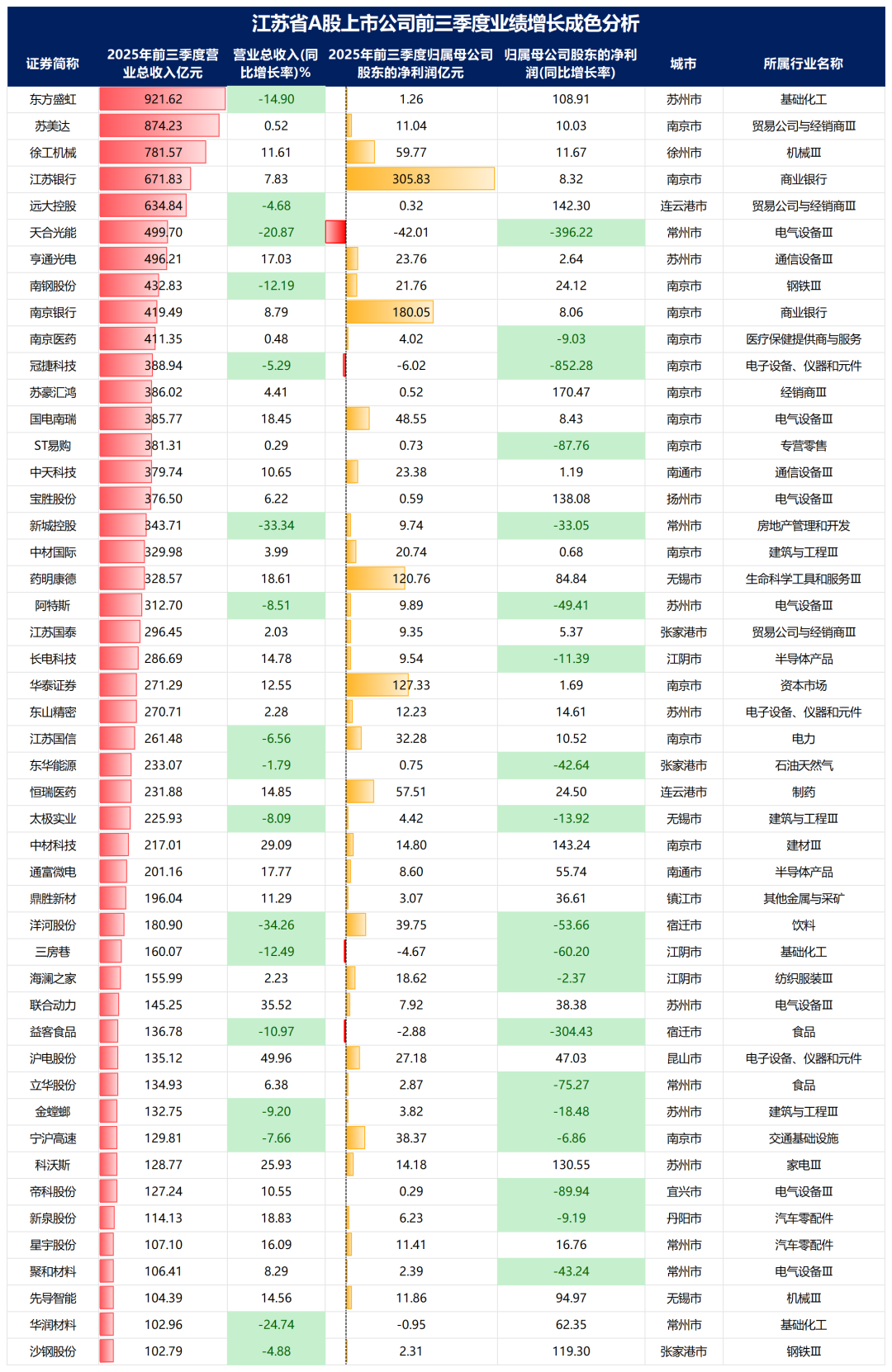 苏州聚集了东方盛虹(基础化工)、东山精密(电子设备)、沪宁股份(电子设备)等企业,在高端制造、半导体、电子设备领域形成产业集群,营收与利润增长兼具 “规模” 与 “增速”,是新兴产业的核心承载地。