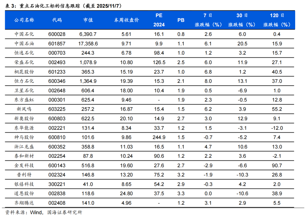 4)高股息。央国企具有高分红率、低负债率、稳定ROE水平,且具有较好的资源优势和稳固的竞争格局优势,我们看好高股息率化工央国企投资机会,主要包括中国石油、中国海油、中国石化、中国化学等企业。