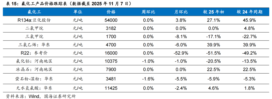 铬盐景气度持续兑现。据Wind,2025年11月7日,金属铬价格79060元/吨,环比10月31日上涨2020元/吨;据百川盈孚,11月7日,氧化铬绿市场价格较10月30日上涨4000元/吨。据铁合金在线,国内大厂10月以来多次发布涨价函。