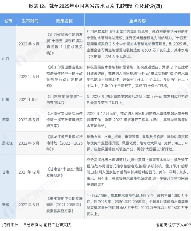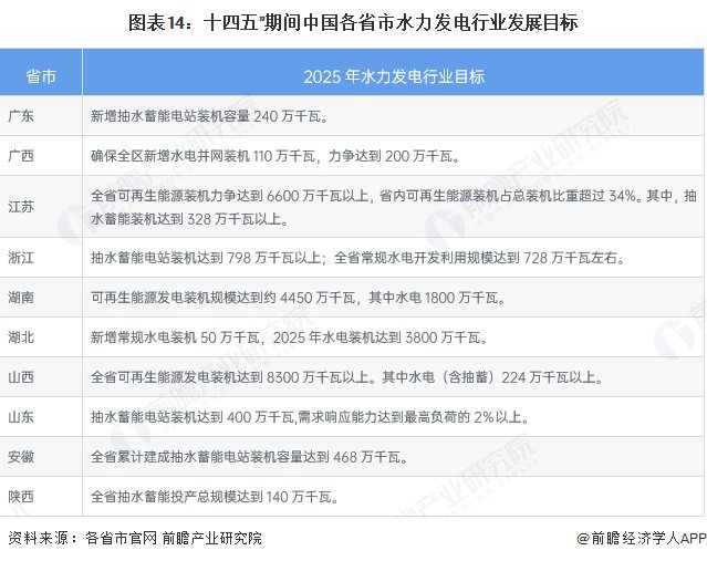 响应国家政策的号召,地方省市还在抽水蓄能领域发布了相关的政策规划。从地方政策规划来看,部分省市区在水力发电装机容量及抽水蓄能建设方面制定了具体的发展目标,总结如下: