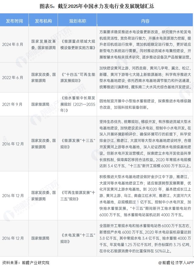 近年来,我国出台多项与水电发力相关的政策,推动水力发电行业的建设和发展。2016年发布的各项“十三五”规划,全面布局了水力发电行业的五年发展。经过五年的建设发展,我国如今的水力发电能力已经有了大幅度提升。在“十四五”纲要中,再次明确强调了可再生新能源的重要性,要求加快水电站的布局,推动能源清洁化。