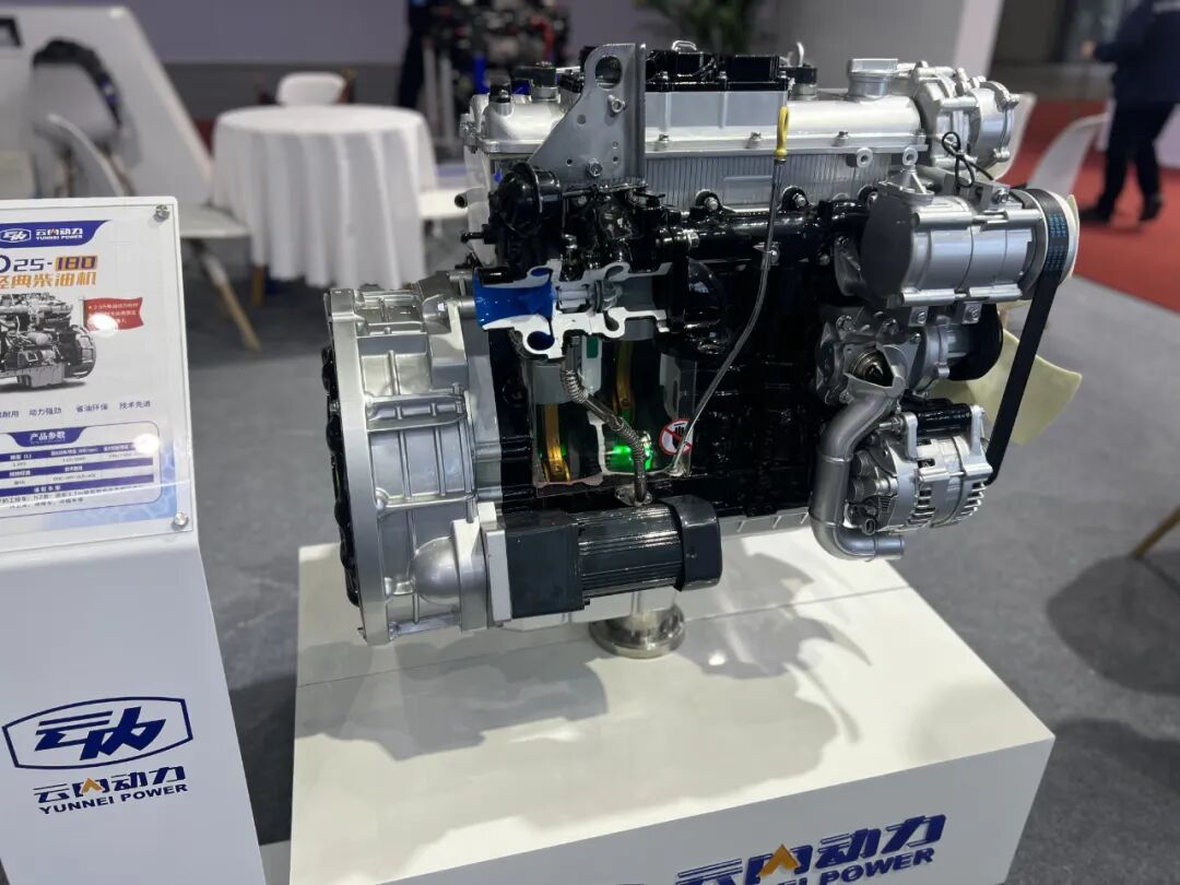 云内动力展示多款动力产品,涵盖氢燃料、柴油、燃气及混动技术。全系产品技术先进,可靠性高,覆盖商用车、工程机械等场景。