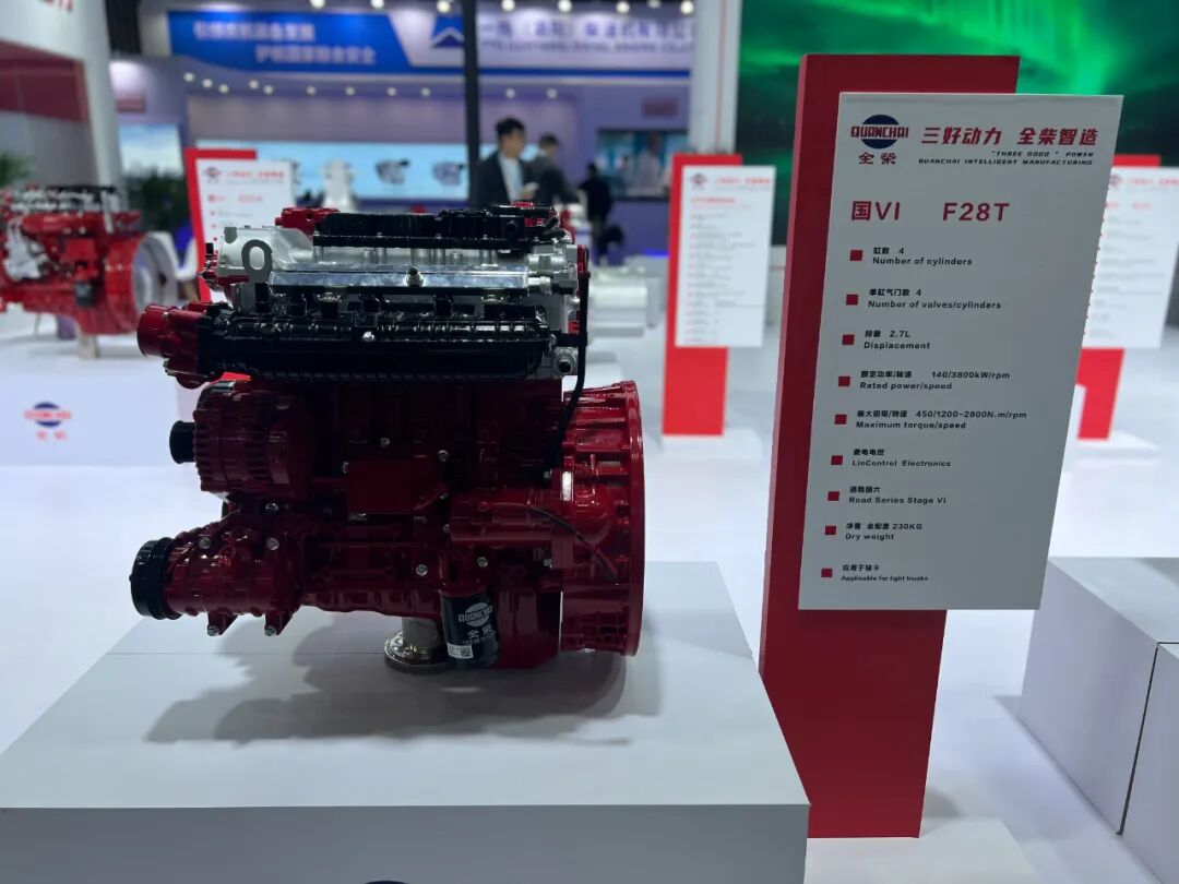 燃气机市场,全柴则带来F28T这款主推产品,排量为2.7L,菱电电控,适配燃气轻卡,目前在国内主流燃气轻卡整车均有搭载,销量增速很快。