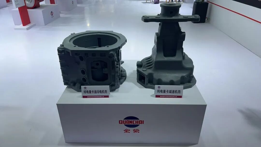 同时还展出了纯电重卡油冷电机壳,纯电重卡减速机壳等产品。