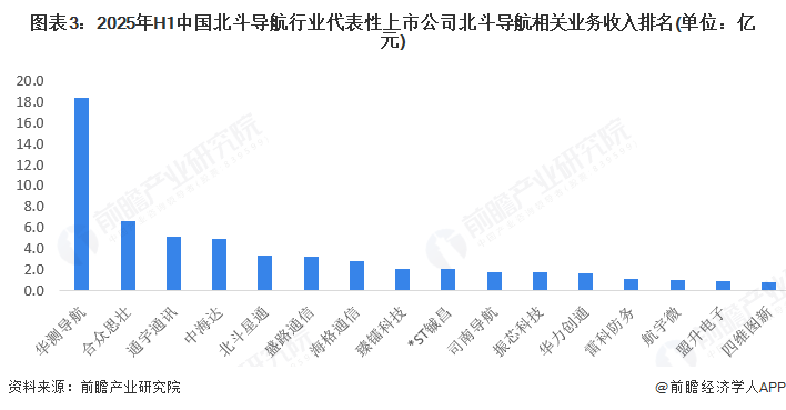 从北斗导航行业内主要企业北斗导航业务的营收规模看,2025年上半年,华测导航、合众思壮、通宇通讯北斗相关业务营收达到5亿元以上,领先于其他上市公司。