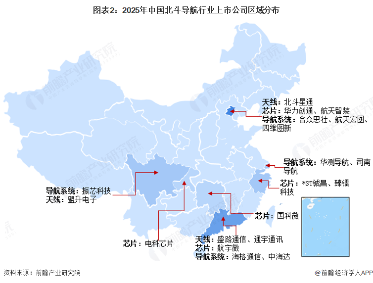 从北斗导航业务的营收规模看,2025年上半年,华测导航、合众思壮、通宇通讯北斗相关业务营收达到5亿元以上,领先于其他上市公司;从渠道布局看,中国北斗导航企业仍以国内市场为主。从布局的重点领域看,芯片、导航系统布局企业较多。