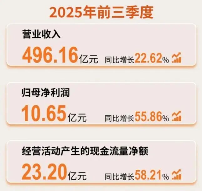 金发科技(600143)的表现堪称“狂飙”。前三季度营业收入496.16亿元,同比增长22.62%;归母净利润10.65亿元,同比增长55.86%;经营性现金流23.20亿元,同比提升58.21%,三项核心指标均实现高速增长(见下图)。其中,改性塑料业务销量209.08万吨,同比增长18.16%;特种工程塑料销量2.40万吨,同比激增53.85%;生物降解塑料销量16.13万吨,同比增长27.31%。这背后,是其围绕新质生产力加强科技创新,不断巩固一体化产业链优势的结果。