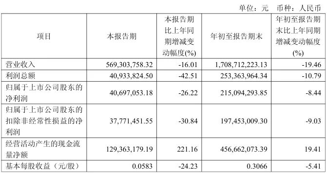 亚宝药业此次出售子公司股权的决策,发生在公司业绩承压的背景下。2025年前三季度,亚宝药业实现营业收入17.09亿元,同比下降19.46%;归属于上市公司股东的净利润2.15亿元,同比下降8.44%。