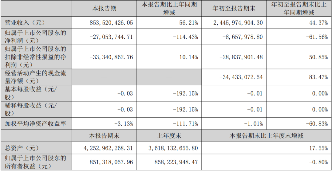 2025年三季度,安凯客车实现营业收入8.54亿元,同比增长56.21%。归属于上市公司股东的净利润亏损0.27亿元。扣除非经常性损益的净利润亏损0.33亿元。前三季度累计营业收入24.46亿元,同比增长44.37%。归属上市公司股东的净利润亏损0.09亿元。扣除非经常性损益的净利润亏损0.29亿元。截至2025年9月底,公司总资产达到42.53亿元,与2024年末相比增长17.55%。财务指标方面,2025年前三季度基本每股收益亏损0.01元。