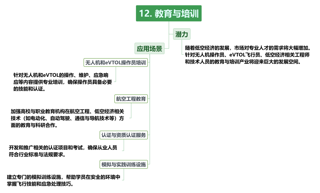 这一方向将为低空经济产业的发展提供持续的人才支持,并确保行业的专业化和安全性,推动低空经济的健康发展。通过涵盖教育与培训、基础设施建设、软件信息服务等多方面的综合发展,低空经济将形成一个具有强大生命力和广泛应用前景的完整生态系统。