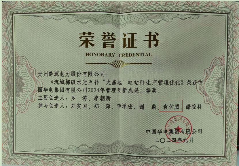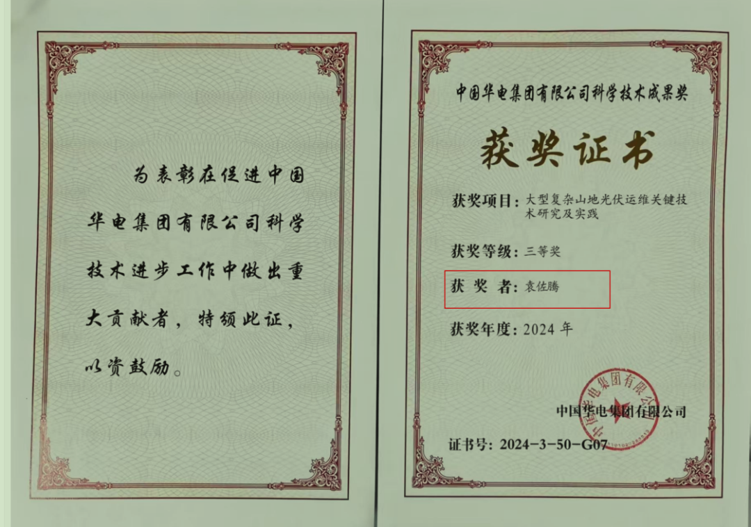 创新成果显著。科技创新和管理创新成果取得多项荣誉,《大型复杂山地光伏运维关键技术研究及实践》荣获集团公司2024年科学技术成果三等奖,《流域梯级水光互补“大基地”电站群生产管理优化》荣获集团公司2024年管理创新二等奖。