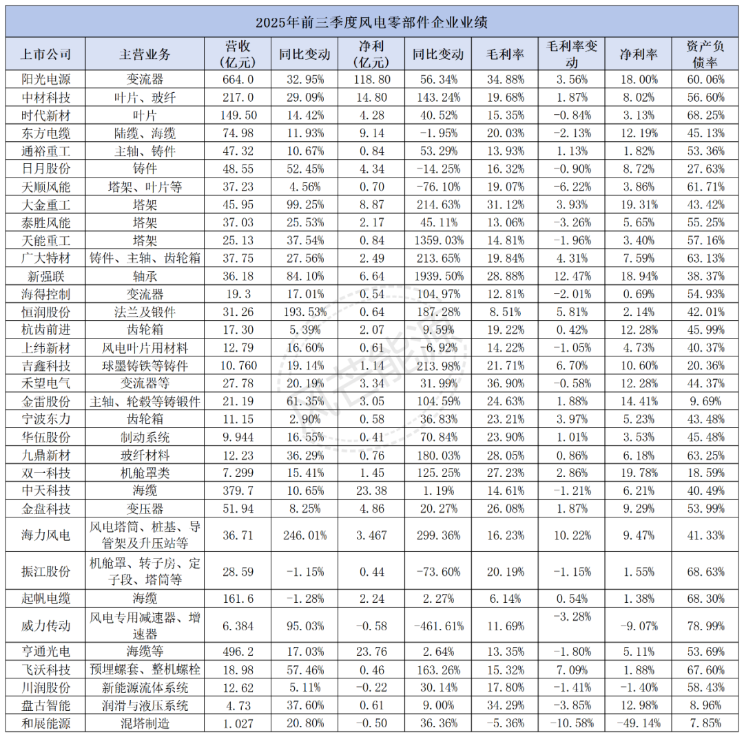 下面将按产业链各环节详细分析今年前三季度风电产业链业绩情况: