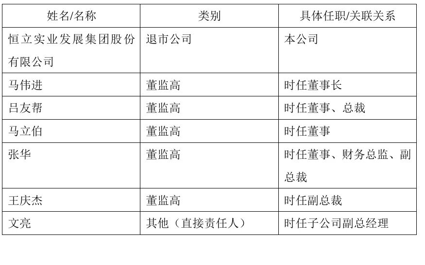 马伟进、吕友帮、张华、马立伯、王庆杰、李滔、王达、王幸辉、黄威、黎晓淮、陈洪、杨艳作为时任董事、监事、高级管理人员对恒立实业2022年年度报告、2023年半年度报告签署书面确认意见,保证报告内容真实准确完整。