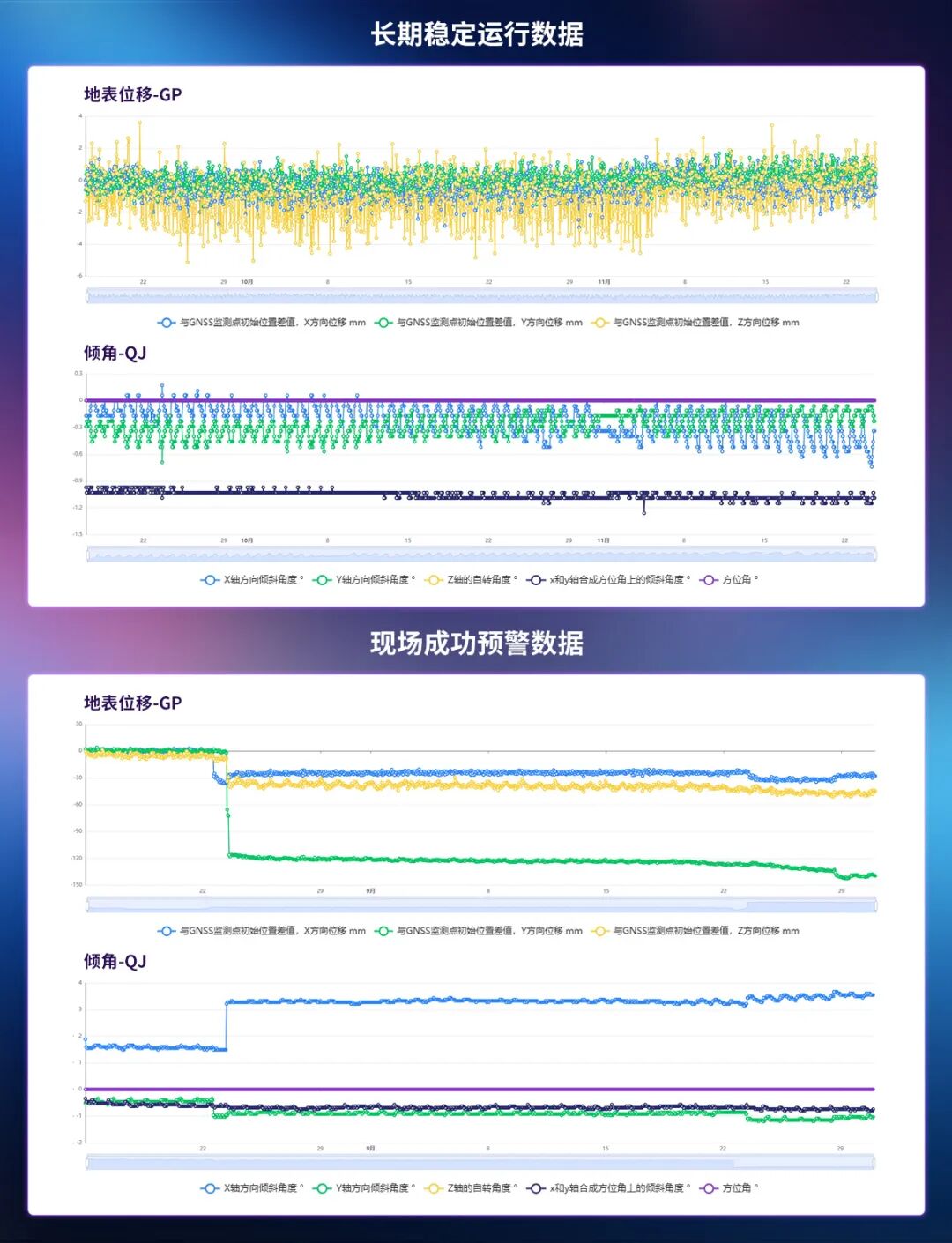 GNSS地表监测站与远程数据处理平台的高效协同,正锻造守护交通边坡安全的“数字脊梁”。系统可对目标边坡进行实时、连续监测,一旦出现超出预设阈值的位移变化,便立即触发预警;平台还会定期生成历史数据分析和变形趋势研判报告。