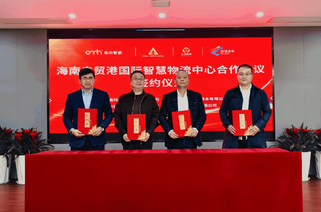 2025年11月24日,海南自贸港国际智慧物流中心项目合作签约仪式在东杰智能子公司——东杰海登(常州)科技有限公司隆重举行。在各方代表的共同见证下,东杰智能科技集团股份有限公司与新西兰阿尔法罗技资本有限公司、大炎投资(海南)有限公司、遨博(山东)机器人有限公司,四方完成重要签约,项目金额达111亿元。这一创纪录的项目标志着东杰智能在自贸港战略布局上迈出关键一步,开创了智能制造领域的"群智融合"新纪元。