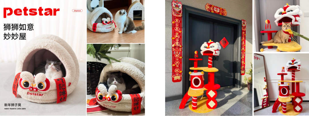 蛇年春节推出的醒狮猫爬架,将非遗元素与现代养宠需求结合,上线即售罄。这不是简单的“国潮贴标”,而是深度挖掘文化IP与宠物生活的共鸣点——醒狮的“守护”意象与宠物主“呵护爱宠”的心理形成情感共振。这种文化赋能使产品脱离同质化竞争,在消费者心智中建立“有温度的宠物生活美学”认知。