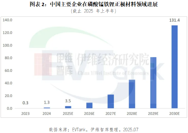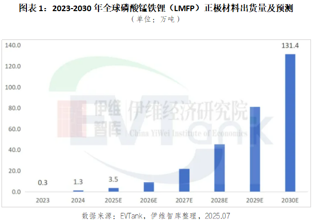 2025年上半年全球磷酸锰铁锂材料出货量已经超过去年全年,预计2025年出货量将达到3.5万吨,到2030年出货量将突破130万吨。