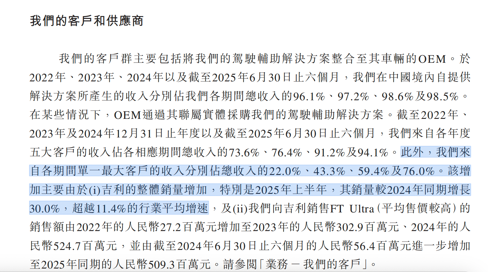 招股书显示,福瑞泰克 2025 年上半年有 76% 的收入来自吉利控股旗下多个品牌,向吉利体系采购的零部件占比也接近一半。
