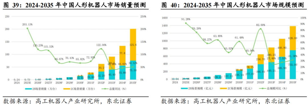 人形机器人领域带来的改性塑料需求增量有望达30万吨。据GGII预测,2025年全球人形机器人市场销量有望达到1.24万台,市场规模63.39亿元,到2030年全球人形机器人市场销量将接近34万台,市场规模将超过640亿元,到2035年,全球人形机器人市场销量将超过500万台,市场规模将超过4000亿元。国内而言,据GGII预测,预计2025年有望成为人形机器人真正落地的“元年”,人形机器人将率先在多个2B下游结构化场景实现落地应用,预计到2030年,面向2C场景的人形机器人有望迎来落地,参考中国新能源汽车的发展历程,预计2031年,人形机器人进入快速起量期,到2035年销量有望达到200万台左右,届时中国人形机器人市场规模有望接近1400亿元。据证券之星数据,若以人形机器人平均单台50千克重量、30%改性材料占比计算,当产量突破2000万台时,相关改性材料需求有望达30万吨。