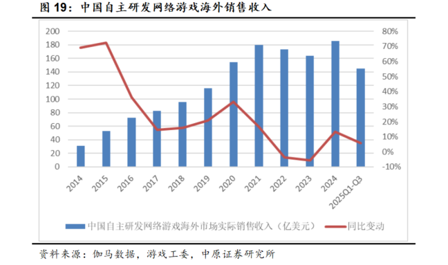 在产业出海层面,2025年前三季度国内自主研发游戏海外市场的实际销售收入144.95亿美元,同比增长5.63%。通过多年在海外市场的探索,国内游戏厂商在数值设计、商业化能力、发行运营、本土化等方面不断加深积累,在全球主要游戏市场占据一席之地,高流水的头部产品数量不断增加。