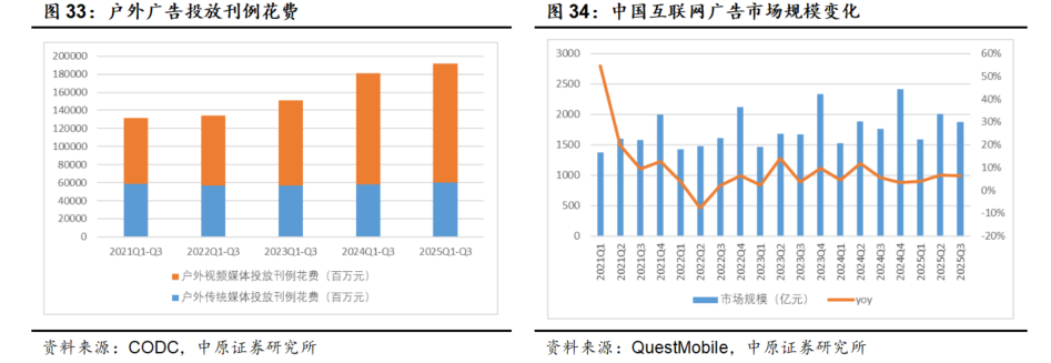 根据QuestMobile数据,2025年前三季度互联网广告市场规模5473.6亿元,同比增加5.83%,整体规模保持温和增长,主要是受行业投放增长、互联网平台创新与业务竞争等影响。